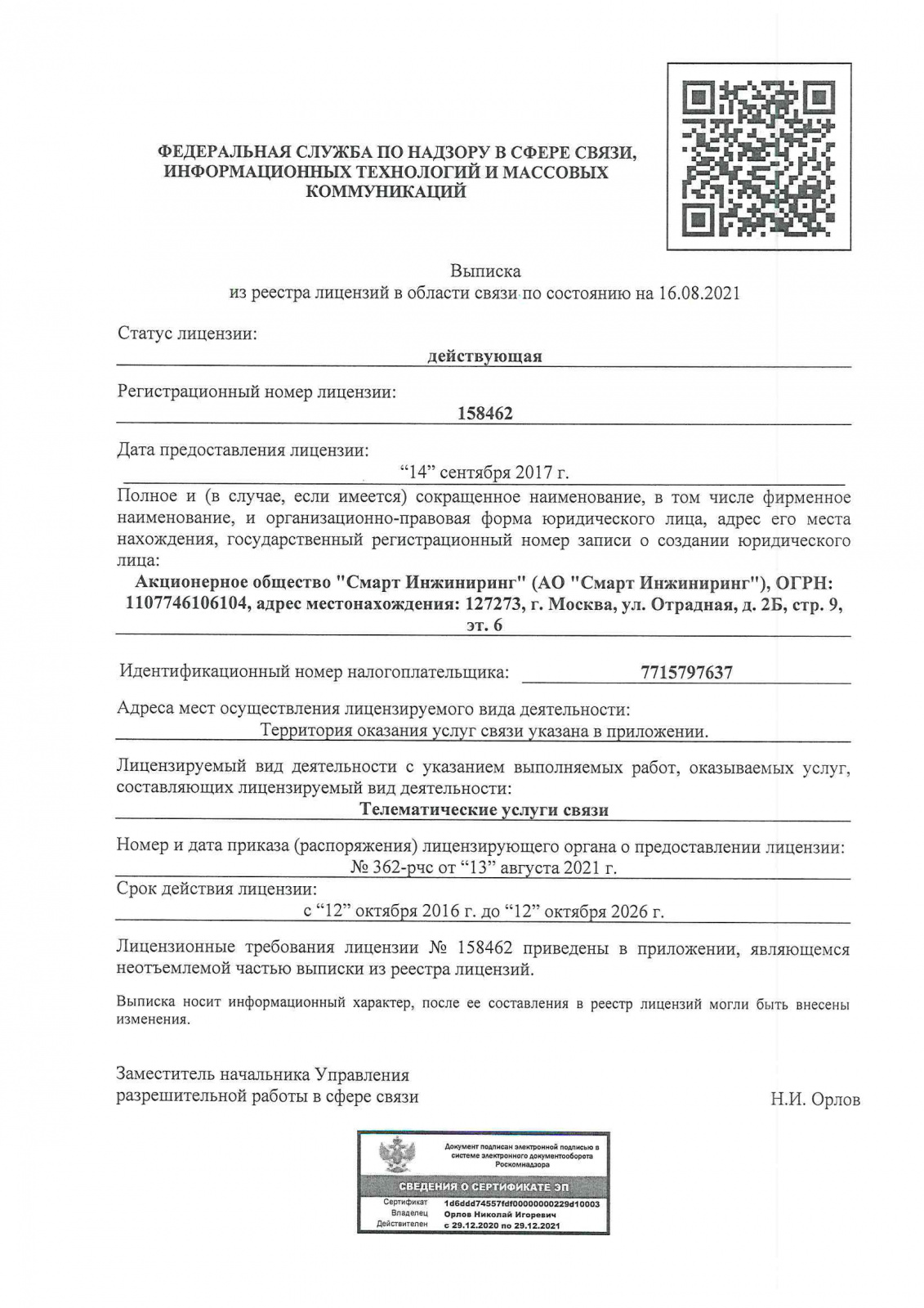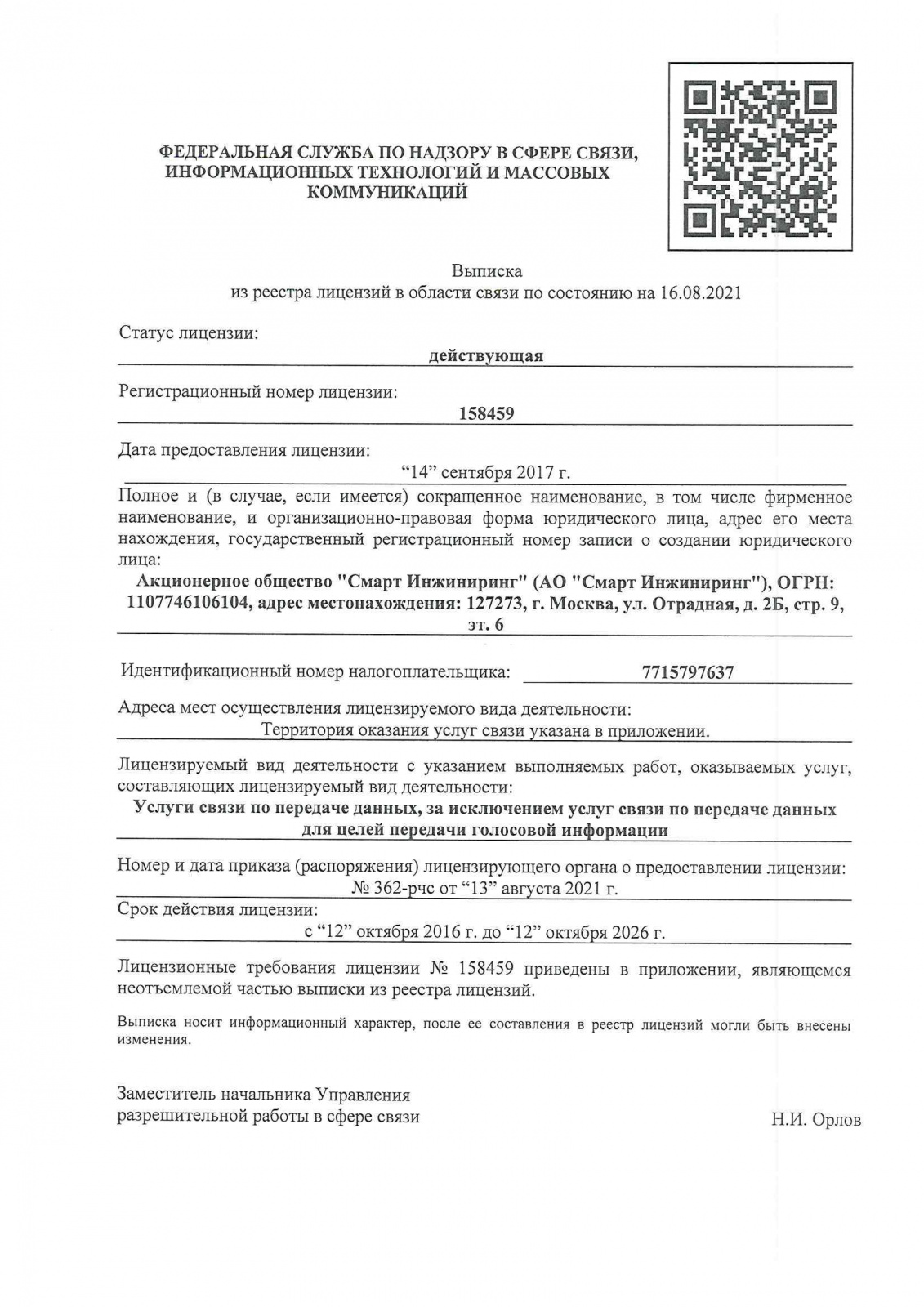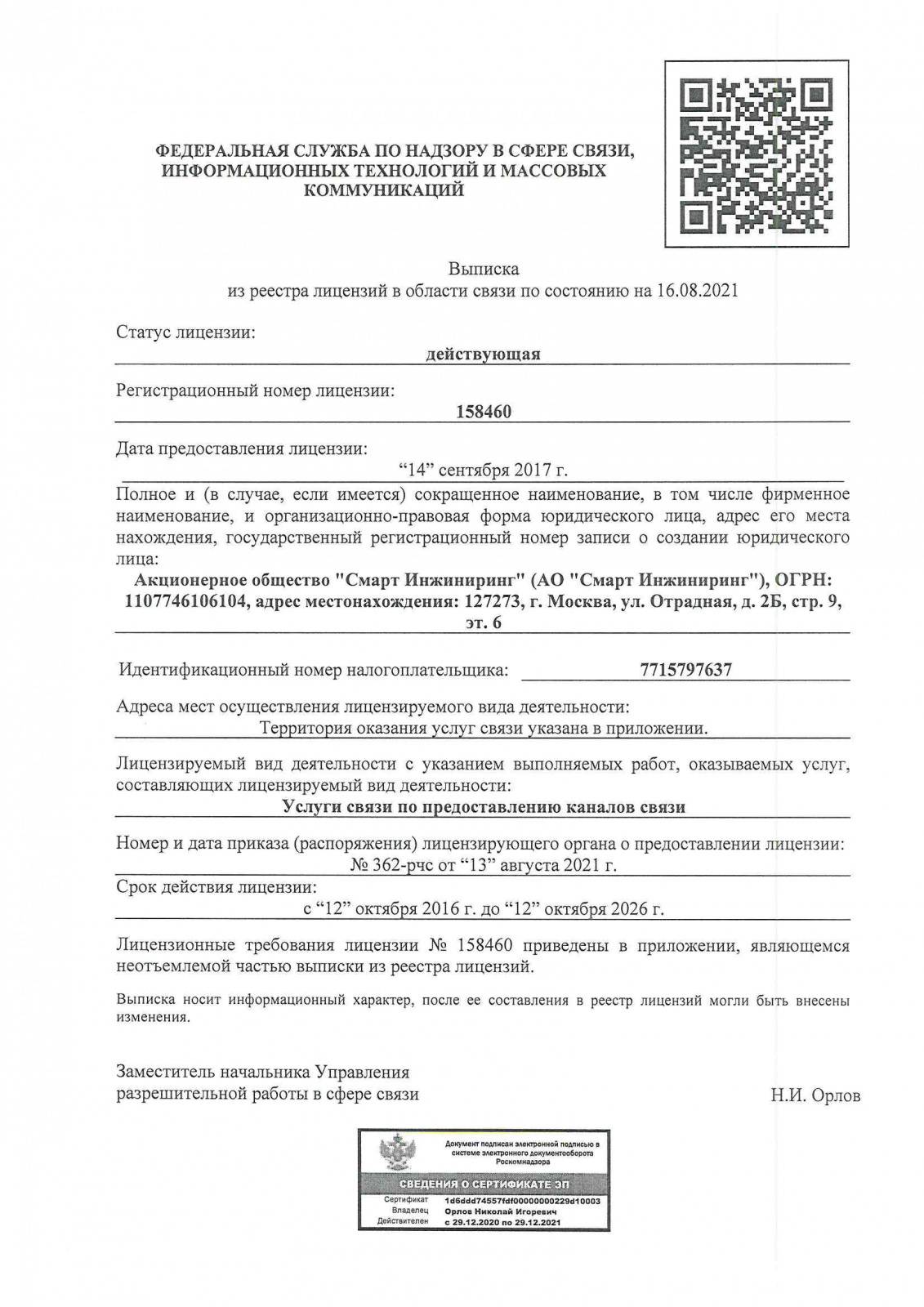 АО «Смарт Инжиниринг» – оператор связи и системный интегратор. Смарт Инжиниринг работает с предприятиями малого, среднего и крупного бизнеса, а также с государственными структурами.